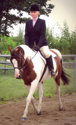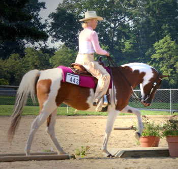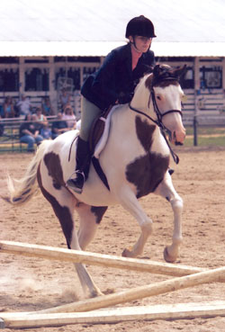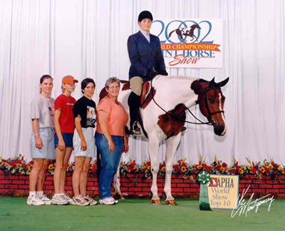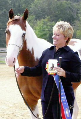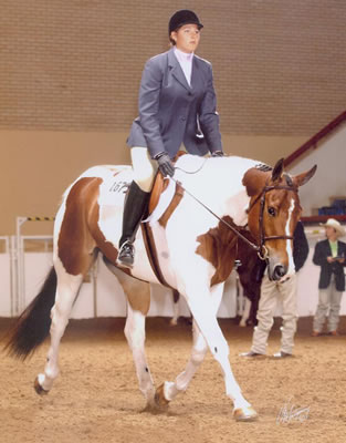 Lucks Heavenly Colors (1/2 Arabian Pinto). PtHA Open English ROM, Open Halter ROM, Tobiano Color ROM, Earner of over 500 points including Nov/Am, Amateur and Open in both Western and English and just completed winning her Open Championship. Congratulations to Karen Viereck, owner!
