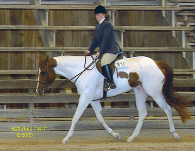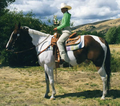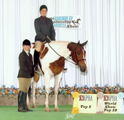 What A Lucky Dude, 1998 Bay Tobiano colt by Lucky Two Straws and out of Tootie Dudie (AQHA). Performance Point earner with ROM Nov. Am. Hunter Under Saddle (12 Points), 4 Nov. Am. Working Hunter Points, 6th at the 2002 World Show in Nov. Am. Working Hunter, Top 10 at the 2002 World Show in Nov. Am. Hunter Under Saddle, 6 Open Hunter Under Saddle Points.