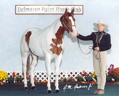 Jump For Joy, Bay Tobiano Mare by Lucky Two Straws, Futurity winner and Performance Point earner.