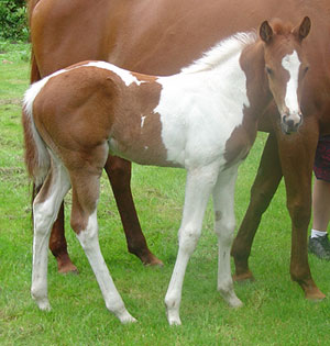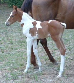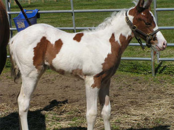 Jump For Joy 2004 bay tobiano filly by Lucky Two Straws and out of Joysome Nan (TB). Photo taken at 10 Days. Congratulations to Lori Zani on the birth of this big beautiful filly!