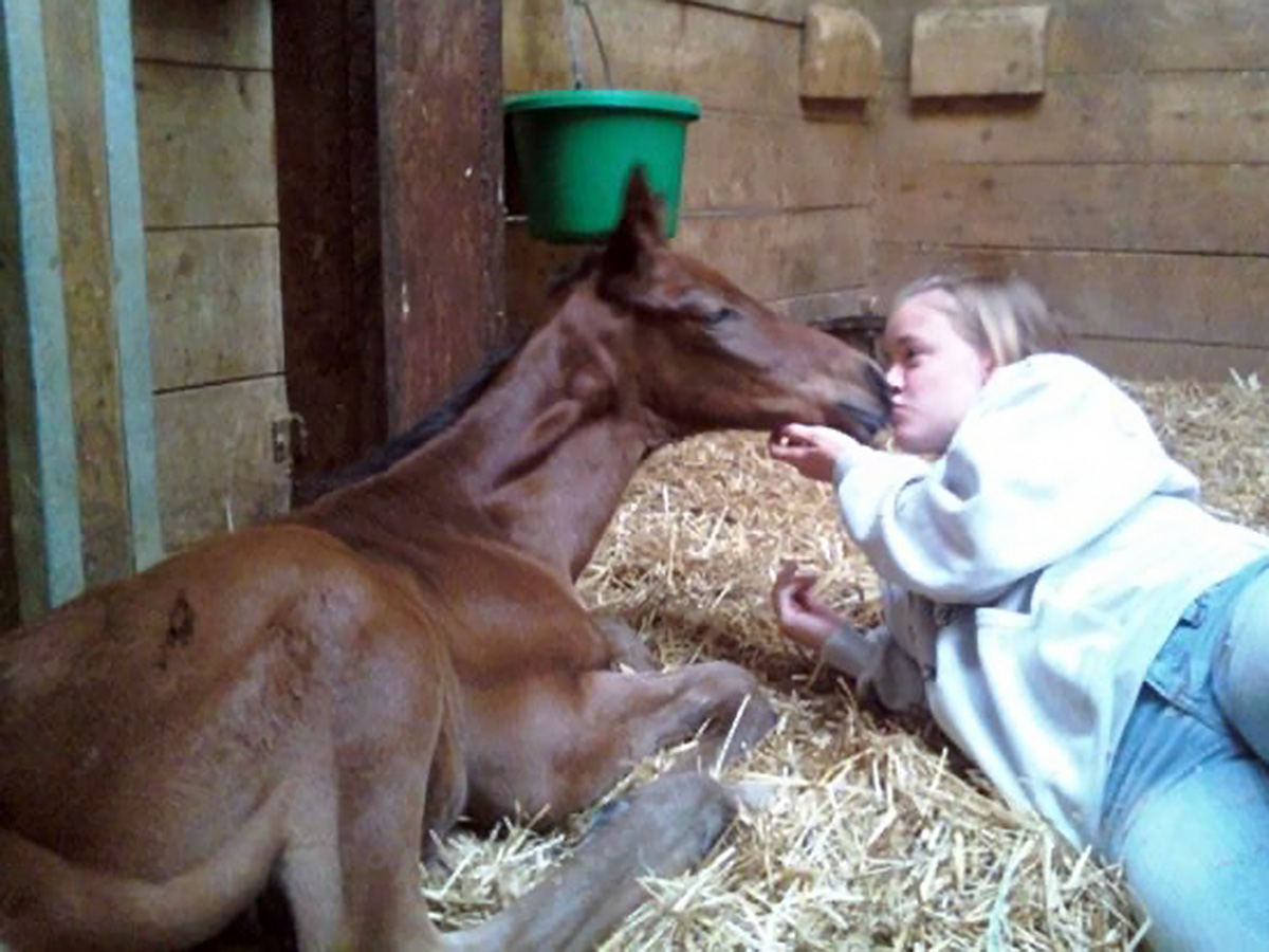 FOAL OUTS: Our facilities offer 24 hour monitoring of foaling mares. Each foaling stall is equipped with cameras which allow us to view mares 24 hours a day. Each year we foal out an average of 60-80 mares and are frequently referred high risk pregnancy mares by area veterinarians. We offer foal out services to all breeds of horses and ponies. Foal out charges are $28.00 per day board plus a $450 foal out fee. (Photo of newborn foal resting shortly after birth) |