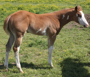 Beautiful sorrel overo filly by 2 Time Res. World Champion, Conclusive Mister. Dam is a daughter of World Champion, Sundays Tradition. This filly is a 1/2 sister to Awesome Savannah, winner of multiple futurities in 2010. Taylor has a gorgeous head and neck and has that "look at me" presence that will get you noticed in the showring. Photos were at 2 months old. SOLD! Congrats on the purchase of this horse to Porfinio Ellis of Ganadera Pasca Ranch in Panama City, Panama. |
